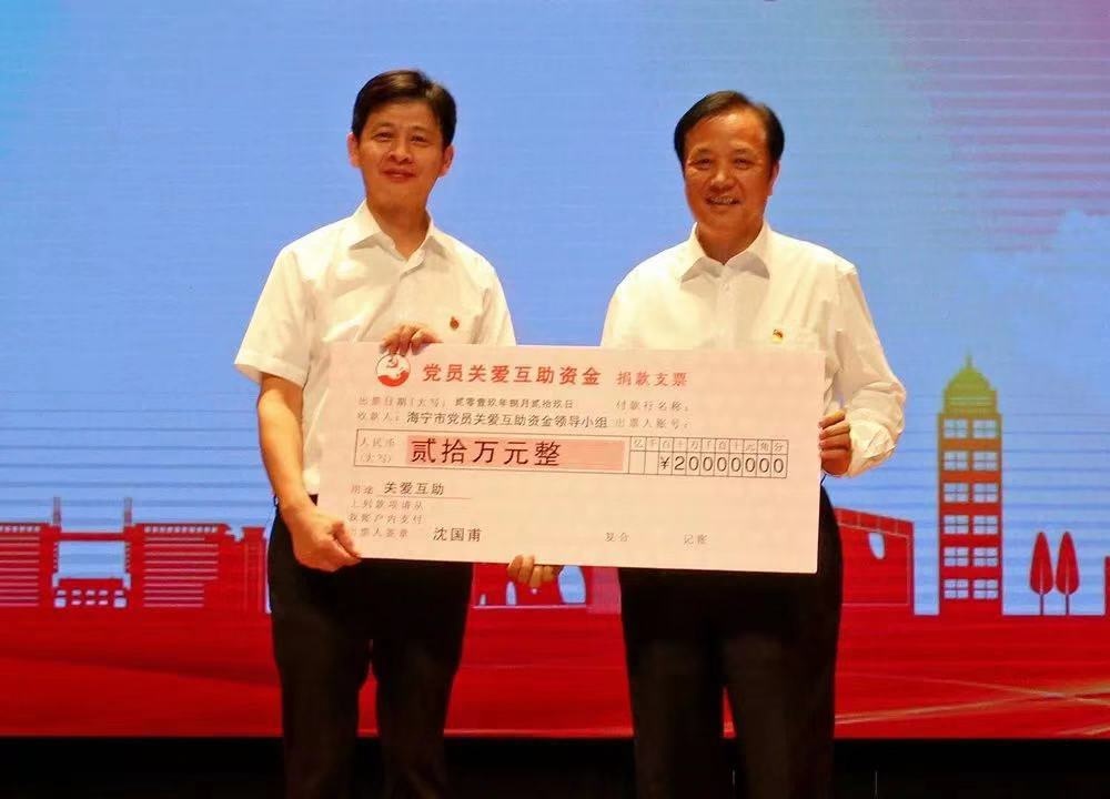 黨委書記沈國甫捐款20萬助力海寧市黨員關愛互助資金成立