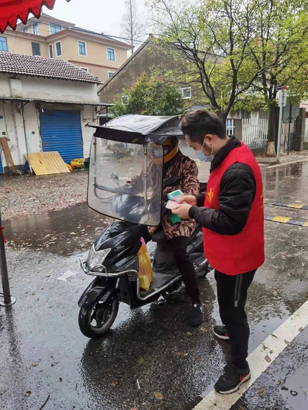 織造支部黨員封亞鴻,連續7天早上8點到下午4點在許巷村木橋組卡點進行志愿者守門,保證區域范圍人員不進不出,居家隔離。