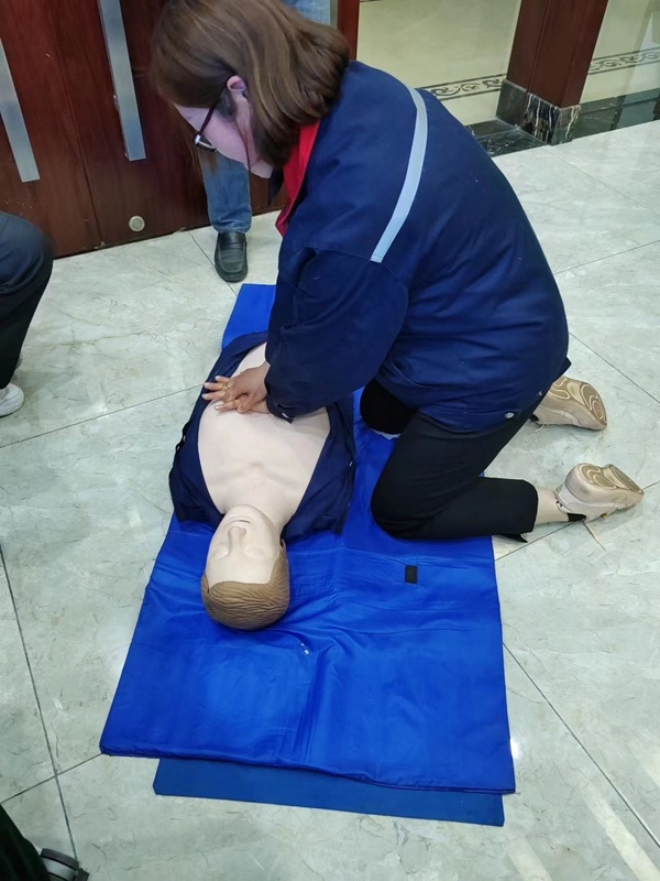 在心肺復(fù)蘇實操課上,學(xué)員們積極性非常高,爭先恐后參與演練,利用模擬人對暈倒者從判斷意識、呼吸情況,再對模擬人進行胸外心臟按壓、口對口人工呼吸、AED除顫等一些列心肺復(fù)蘇操作。課上,老師對學(xué)員的不正確的操作手法及時進行糾正。