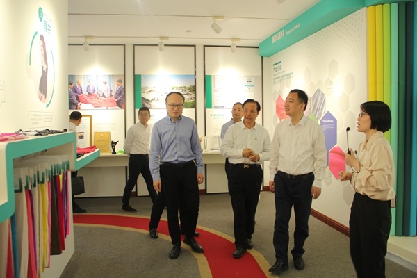 顏海榮一行在宏達黨委書記、董事長沈國甫的陪同下,實地參觀了公司黨建展廳,詳細了解了宏達黨建品牌“經緯力量”、公司發展歷程和生產經營情況。宏達黨委作為有一定辨識度和影響力的兩新組織黨建示范點,通過搭建“經緯力量”體系,將“經”“緯”統籌應用,縱橫成網、交叉成鏈,在凝心聚力中釋放力量。顏部長充分肯定了公司黨委在黨建工作中取得的成效,表示宏達是一家有情懷、有理想、重黨建、重持續發展的企業,提出宏達要繼續堅持黨建引領,凝聚黨員組織力量,發揮干部引領作用,加快創新發展腳步,將公司特色亮點轉化為實實在在的企業助推力、新動能,加速推進企業高質量發展,為嘉興經濟發展賦能。
