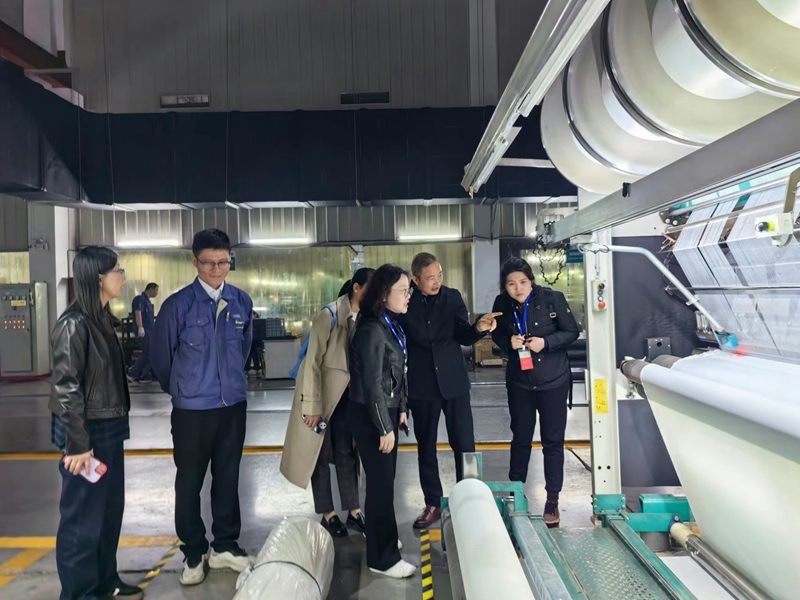 李秘書長一行參觀了公司經編車間,進一步了解了公司產品的生產規模及生產經營情況。