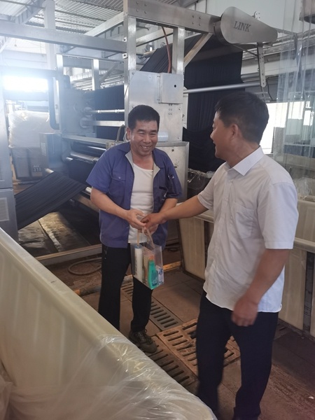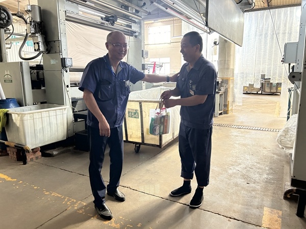 他們先后來(lái)到公司溫度最高的兩個(gè)車(chē)間染整定型、染整染色車(chē)間,向在高溫天氣中堅(jiān)守崗位的一線員工表示親切的慰問(wèn)和感謝。在生產(chǎn)現(xiàn)場(chǎng),囑咐大家高溫生產(chǎn)不忘安全,做到勞逸結(jié)合;也要求各部門(mén)切實(shí)做好防暑降溫工作,保障員工健康安全。