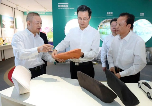 2024年10月9日下午,嘉興市委書記陳偉赴海寧市許村鎮(zhèn)專題調(diào)研時尚產(chǎn)業(yè)高質(zhì)量發(fā)展工作,期間蒞臨宏達高科調(diào)研指導,宏達高科董事長沈國甫、副董事長沈珺、總經(jīng)理許建舟等公司領導陪同調(diào)研。