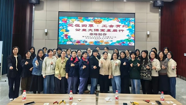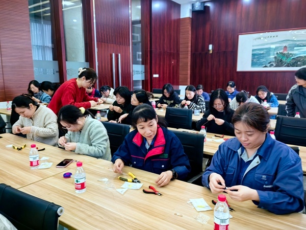 2024年11月23日下午,海寧市工人文化宮“愛在四季·工會有約”公益大課堂基層行活動走進宏達高科控股股份有限公司,為公司女職工代表帶來了一堂幸福感滿滿的手串制作公益課。