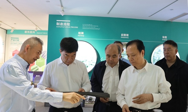 趙同慶書記一行在沈國甫董事長的陪同下參觀了公司展廳,深入了解了公司的地理區位、企業文化、發展歷程、產業布局和未來發展等。