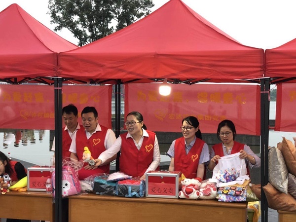 2019年5月31日傍晚,海寧市許村鎮許村社區聯合共建單位黨組織、愛心企業、社會組織等多方力量,在許村龍渡湖廣場開展了一場以“為愛趕集,溫暖童心”為主題的愛心公益主題活動,宏達控股集團黨委作為共建單位,派出了10余名黨員參與活動。