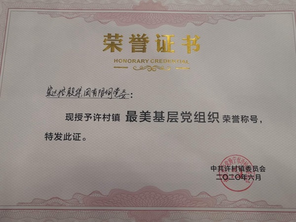 2020年6月30日晚,保持最奮進姿態(tài)·展現(xiàn)最精彩許村——許村鎮(zhèn)慶祝中國共產(chǎn)黨成立99周年暨“最美奮斗者”表彰晚會在許村鎮(zhèn)政府五樓會議廳隆重舉行。會上宏達控股集團黨委被評為最美基層黨組織。
