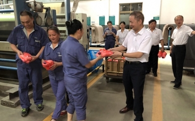 近來連日高溫,2020年8月12日上午9點30分,總經理許建舟、工會主席..