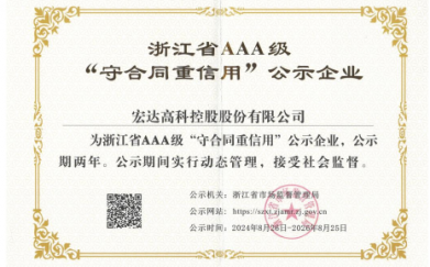 2024年8月,宏達高科通過浙江省AAA級“守合同重信用”企業(yè)復評。據(jù)悉..